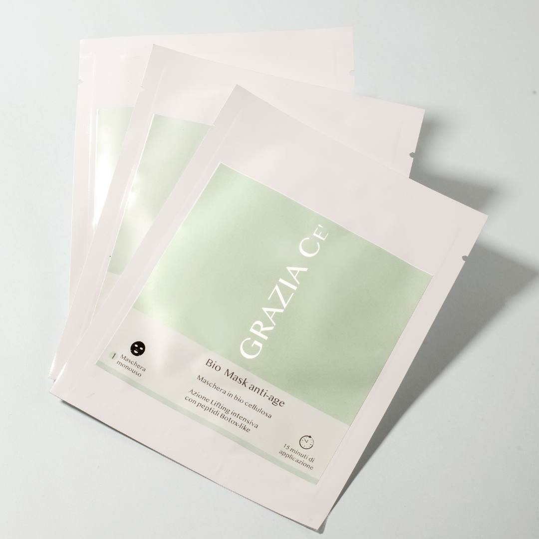 La Maschera Anti Rughe BIO MASK ANTI-AGE è la scelta perfetta per chi desidera una pelle più giovane, idratata e luminosa. Grazie alla sua formulazione avanzata in bio cellulosa e agli ingredienti attivi, offre un trattamento completo ed efficace contro i segni dell’invecchiamento. Prova ora e scopri la differenza di una pelle rigenerata e radiosa con BIO MASK ANTI-AGE!